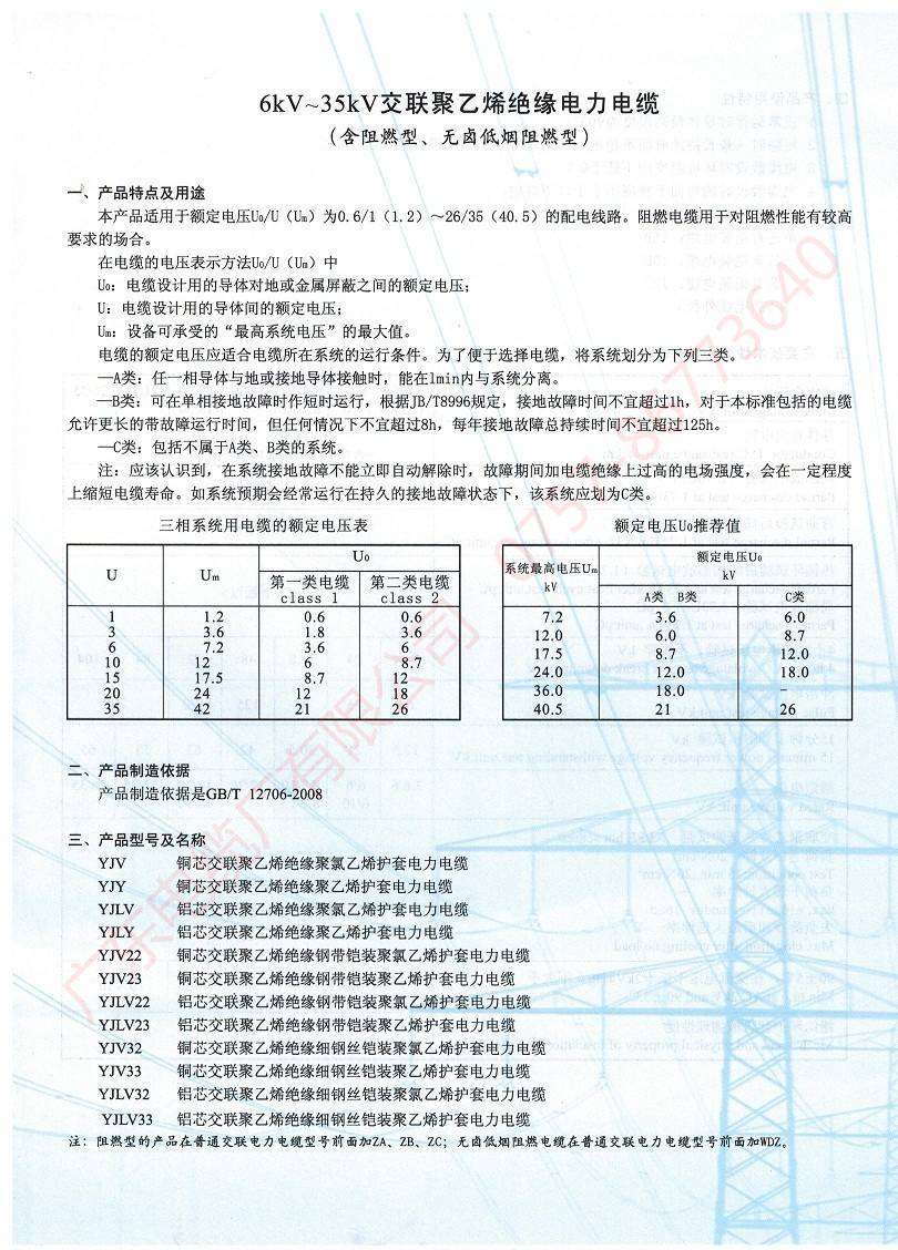 - 6~35kV交聯聚乙烯絕緣電力電纜